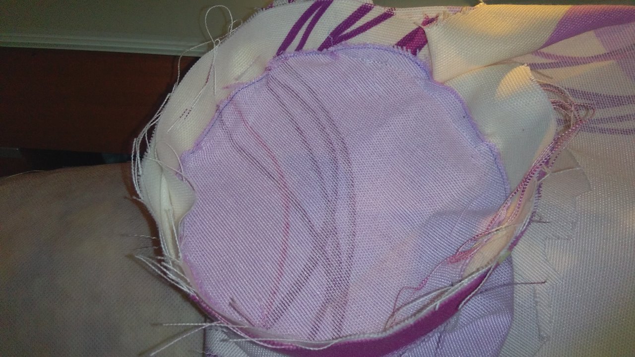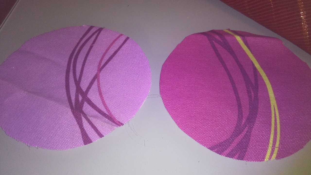 la misma medida para la tela del cojin que para la tela del forro del relleno. A continuación cosemos la funda del relleno dejando una abertura en el centro para rellenar el cojin y después cosemos los dos círculos a ambos lados.